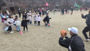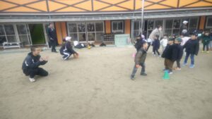 ダンスを一緒に踊ったり・しっぽ取りゲームを行い